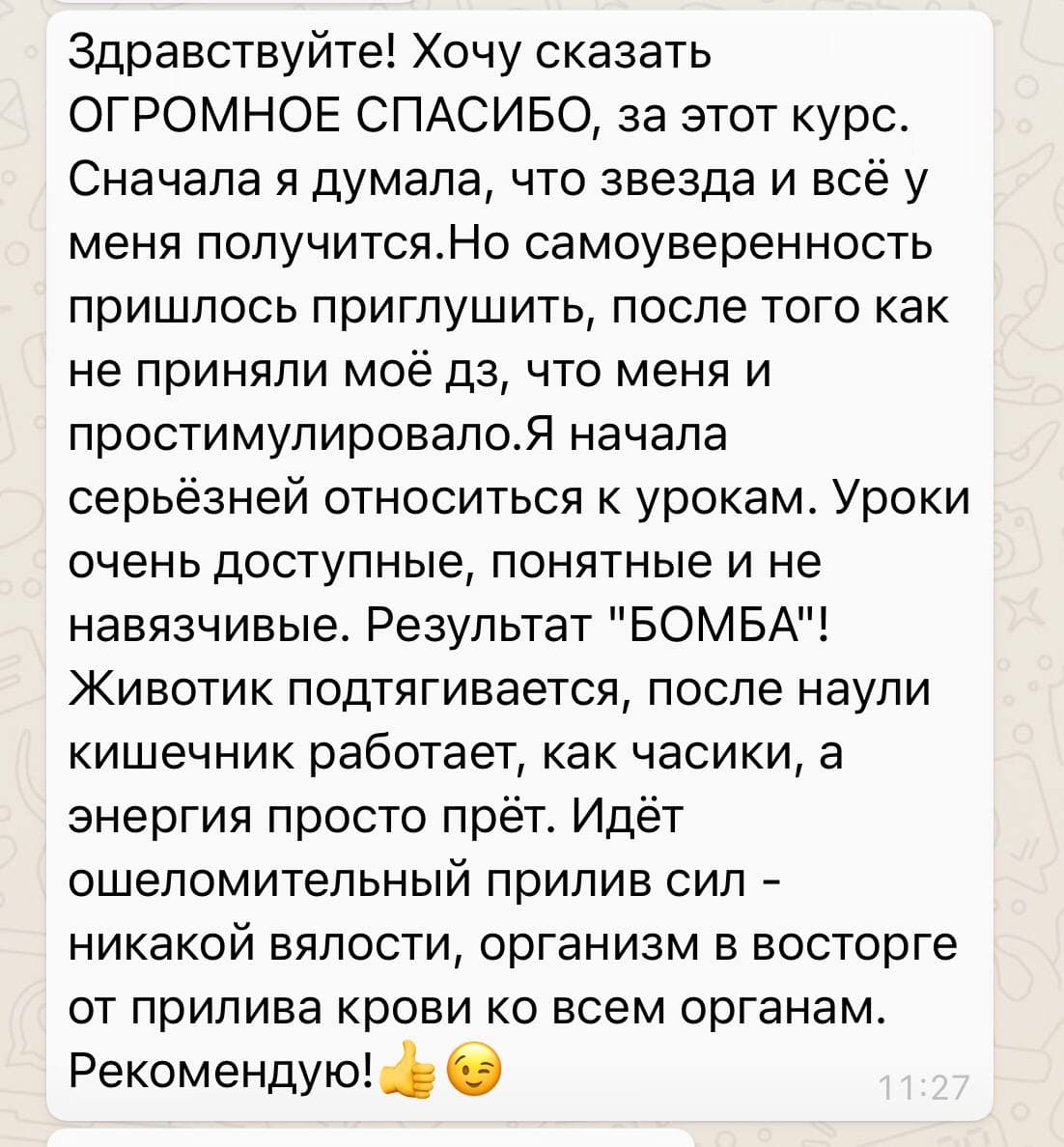 И если вы давно думали, что бы нового привнести в свой быт этим летом, то я предлагаю попробовать практики по интимной гимнастике на моём курсе SUPER-G! Да-да, я снова о своем, но как можно этим не делиться, когда у моих учениц такие результаты? | | | | ✅ Более 40000 девушек, прошедших курс SUPER-G, подтверждают: практики меняют жизнь, делая ее лучше и качественнее! | | | Благодаря курсу Super-G, вы: | | | | | усилите ощущения во время проникновения; | | | | начнете получать более яркие оргазмы, а кто-то испытает его впервые; | | | | улучшите состояние тела: живот станет плоским, а талия — тонкой; | | | | избавитесь от опущения органов и от недержания; | | | | укрепите женское здоровье; | | | | подготовитесь к родам или ускорите восстановление после них; | | | | перестанете страдать во время менструации, и климакс пройдёт значительно более мягче; | | | | забудете о постоянных вздутиях и ощущениях переполненности. | | | | | Когда, как не летом пускать что-то новое в свою жизнь? Присоединяйтесь к курсу SUPER-G Интимная гимнастика и вакуум живота и получайте ДВОЙНОЕ удовольствие от близости с партнером и от самой себя!