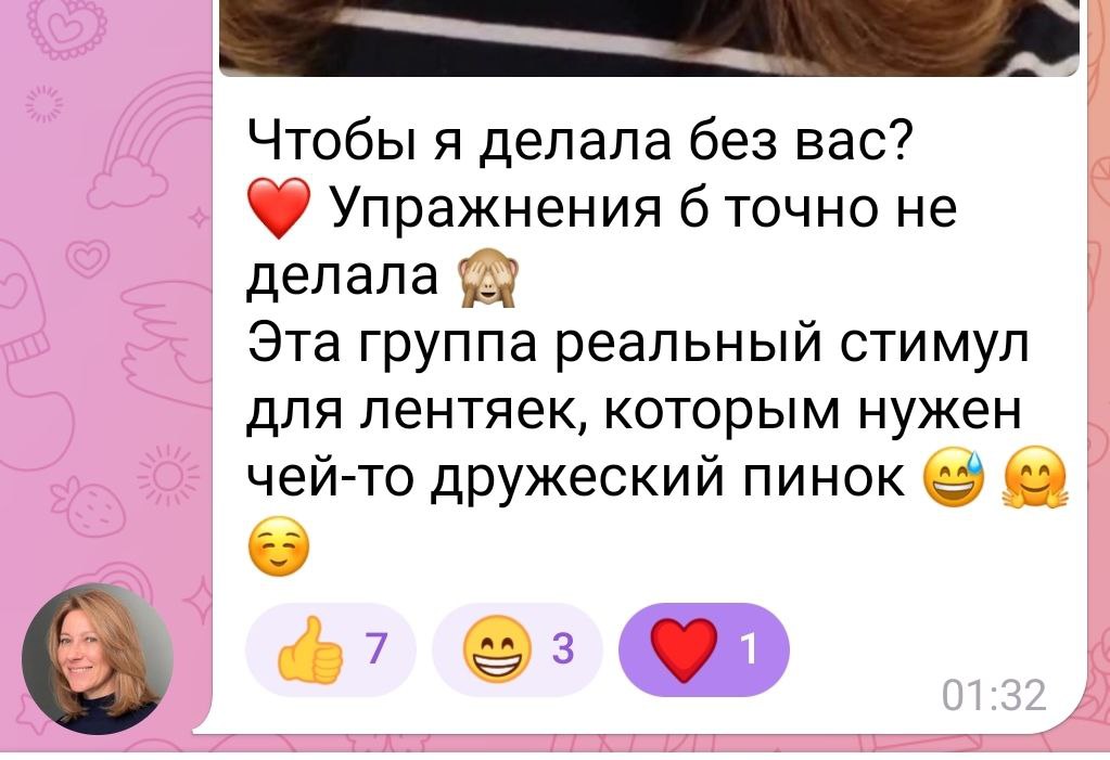 Одно из больших преимуществ клуба — закрытый чат с участницами. Наши ученицы постоянно отмечают его ценность и пользу на пути к СУПЕРрезультатам. В чате вас ждет не только общение!