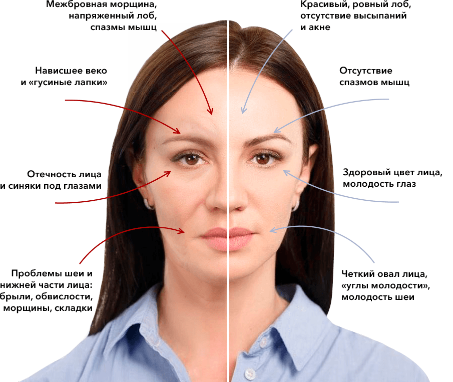 ⛔ Нарушается работа лицевых мышц.