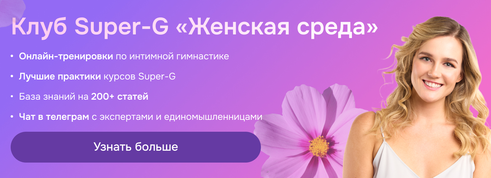 Длительность видео — до 1 минуты.Если же пока вы не уверены в своих умениях, не расстраивайтесь: всему свое время. Продолжайте ваши ежедневные тренировки, и рано или поздно, все получится! Если у вас есть вопросы, не забывайте оставлять их нашим экспертам. | | | | Как не потерять мотивацию после курса? | | | | Эффект от интимной гимнастики будет, если заниматься регулярно. Знаете, какая самая частая проблема у выпускниц курса? К сожалению, чаще всего, они постепенно теряют мотивацию и перестают тренироваться регулярно 🥲 | | | | Чтобы интимная гимнастика стала частью вашего образа жизни, мы создали для вас клуб «Женская Среда» 🌸