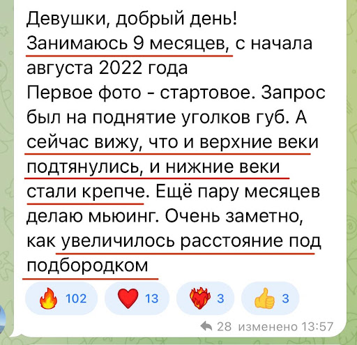 В клубе PRO Красоту мы настроены на долгосрочную работу и получение наилучших результатов в естественном омоложении. Всем известно, что регулярность — ключ к успеху, и в клубе мы не дадим вам бросить тренировки на самотек. За год вы: | | | | | освоите все программы по естественному омоложению; | | | | выработаете регулярность в тренировках; | | | | получите стойкий результат, в разы превосходящий тот, который вы увидели за время обучения на курсе. | | | | | ⏹ Одним словом, год доступа в клуб PRO Красоту — это инвестиция в себя и сохранение своей молодости!