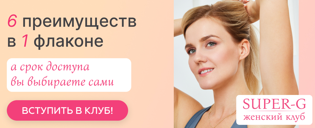 ⏩ Чтобы не жалеть о потерянном лете, предлагаю начать наполнять его яркими событиями вместе с КЛУБОМ SUPER-G ✨ | | | | Приобретайте подписку на клуб со скидкой до 60% до конца недели и получите: | | | | | Доступ к 2 курсам: «SUPER-G База» и «Массаж груди» | | | | Доступ к 2 интенсивам по интимной гимнастике с тренажером лазерная указка (для начинающих) и с тренажером кегеля для продвинутого уровня | | | | 100+ статей о здоровье, сексе, красоте, психологии и… мужчинах, конечно же✊ База знаний ежедневно пополняется, | | | | Доступ в чат с единомышленницами, мной и другими экспертами, где я лично отвечаю на ваши вопросы. Также мы еженедельно проводим интерактивы, которые помогут вам провести лето ещё интереснее и ярче | | | | | Вам точно в Клуб SUPER G, если: | | | | ⭐ Хотите получать больше удовольствия от секса, раскрыть новые эрогенные зоны и проработать сексуальность.