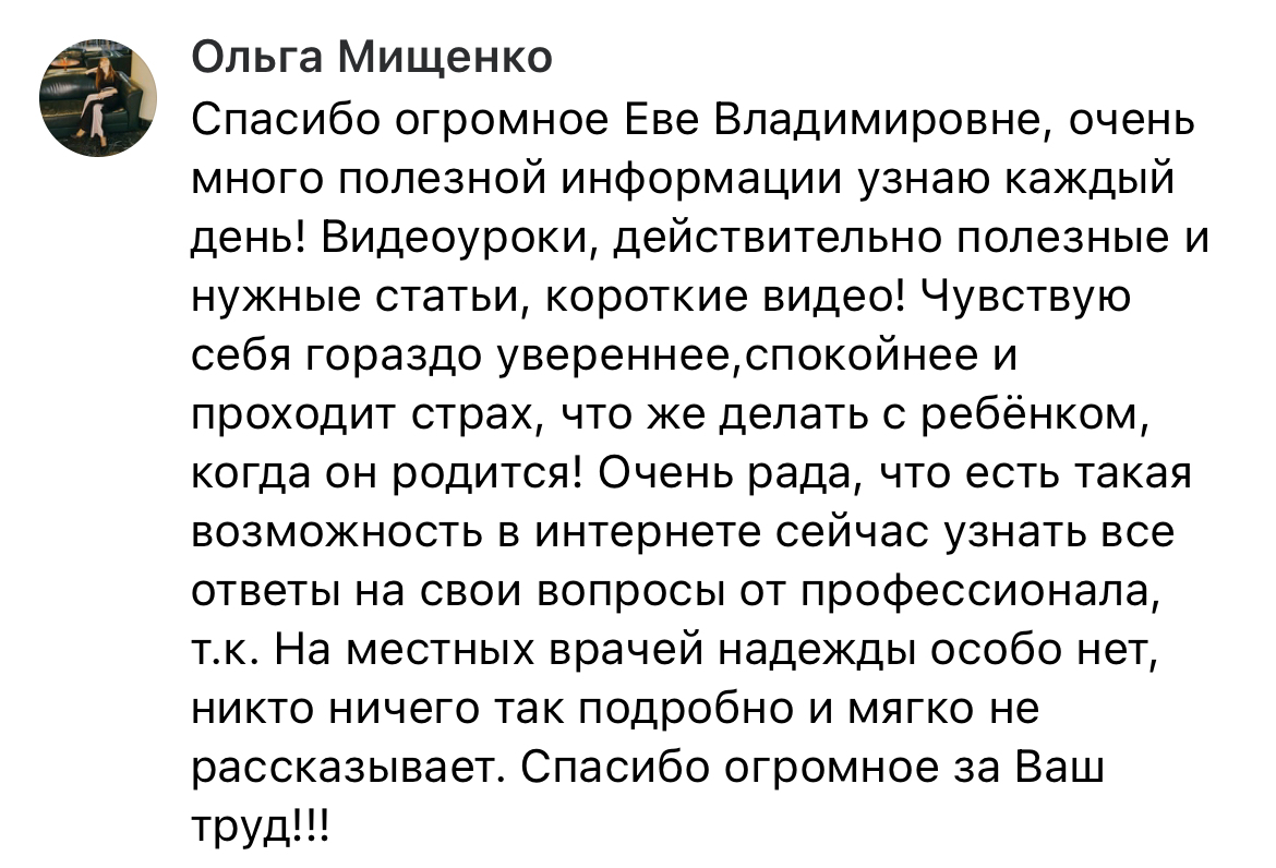 После оплаты курса SUPERMAMA «0−3 месяцев» вы получите: | | | | | самую масштабную программу про детей от 0 до 3 месяцев; | | | | обратную связь от врача-педиатра; | | | | материалы прямиком из роддома, записанные практикующим врачом-педиатром; | | | | полезные методички и чек-листы. | | | | | Более 1000 мам уже оценили преимущества курса и поделились своей обратной связью. | | | | Все, что вам важно знать о жизни с малышом от 0 до 3-х месяцев уже собрано в курсе SUPERMAMA «0−3 месяцев»!