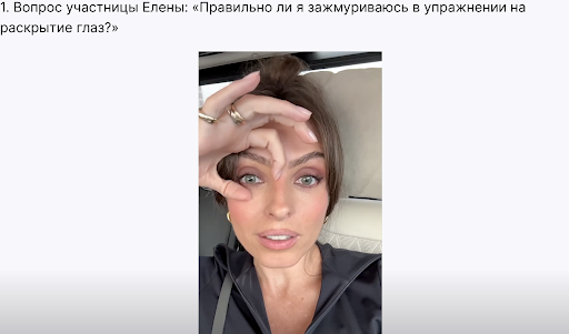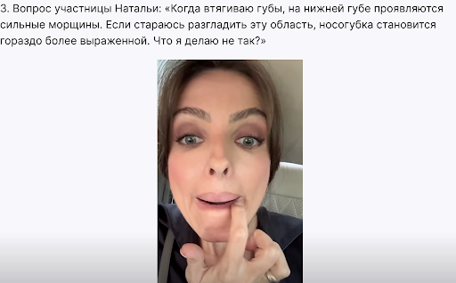 ⭐️ Эта уникальная возможность доступна в рамках клуба PRO Красоту. Девушки могут 1 раз в месяц отправить видео с выполнением упражнения и получить разбор от автора курса. | | | | Мы закрываем продажи 3-месячной подписки на клуб PRO Красоту. Получите все курсы Анастасии Бурдюг и возможность получить индивидуальный разбор по единой подписке всего за 1880 рублей! | | | | Какие вопросы можно задать? | | | | ⏬ Вот что спрашивают ученицы: | | | | | Правильно ли я зажмуриваюсь в упражнении на раскрытие глаз? | | | | Верно ли я закатываю губу в упражнении на овал лица? | | | | Правильно ли я выполняю упражнение на подъём щёк? | | | | Когда втягиваю губы, на нижней губе появляются морщины. Когда разглаживаю их, носогубка становится выраженной. Что я делаю не так? | | | | | Обратная связь Анастасии помогает девушкам быстрее прийти к результатам и приобрести уверенность в том, что они всё делают правильно ❤️ | | | | | Участницы присылают вопрос в видеоформате с демонстрацией выполнения упражнения. | | | | Анастасия записывает видеоответ — даёт индивидуальные рекомендациями и показывает правильную технику. | | | | | ❗️Все ответы размещаются в чате на платформе клуба в рубрике «Вопросы из чата».