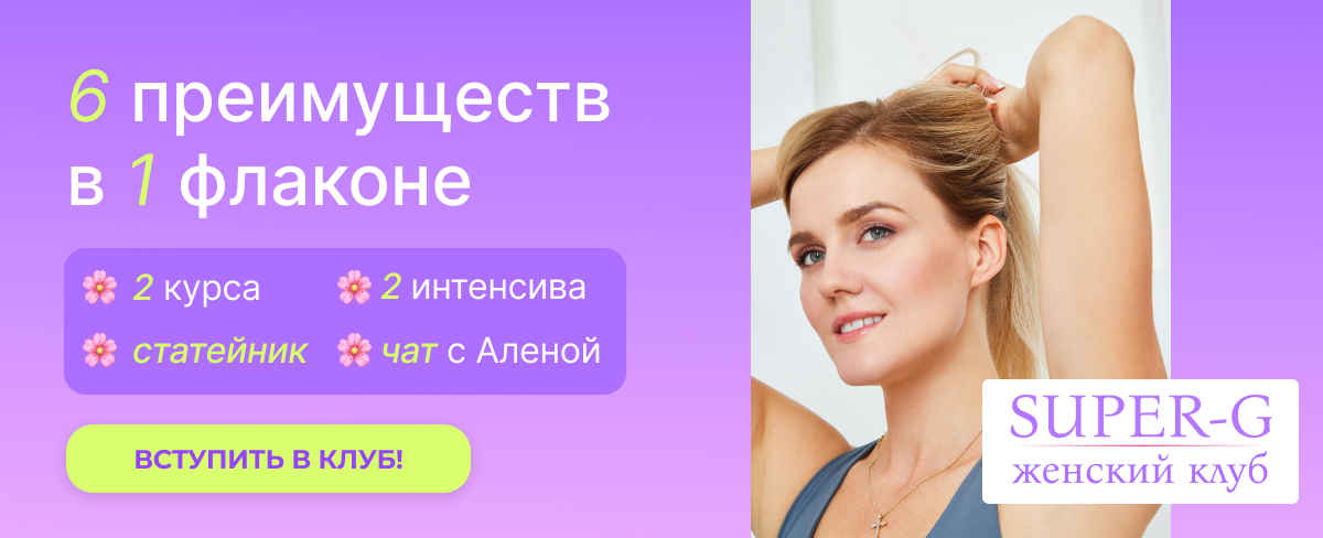 А ещё Клуб SUPER-G — это: | | | | | Доступ к 2 курсам: «SUPER-G База», и «Массаж груди», | | | | 2 интенсива с тренажёром Кегеля и лазерной указкой в подарок, | | | | 100+ статей о здоровье, сексе, красоте, психологии и… мужчинах, конечно же ✨ База знаний ежедневно пополняется, | | | | Доступ в чат с единомышленницами, где я лично отвечаю на ваши вопросы. Также мы еженедельно проводим интерактивы, которые помогут вам провести лето ещё интереснее и ярче | | | | | Вам подойдёт Клуб SUPER G, если вы хотите: | | | | | Брать от жизни всё самое лучшее и всегда выбираете super all-inclusive. | | | | Получать больше удовольствия от секса, раскрыть новые эрогенные зоны и проработать сексуальность. | | | | Решить проблемы с опущением или недержанием. | | | | Продлить молодость, так как появились первые возрастные изменения. | | | | Жить полноценной жизнью в любой день цикла и забыть о проблме болезненных месячных как о страшном сне. | | | | Раскрыть свою женственность и сексуальность на максимум и начать кайфовать от себя. | | | | | ✊ Клуб — возможность брать от жизни всё с максимальной экономией. Участницы Клуба не только достигают максимальных результатов, но и экономят до 14 000 рублей! | | | | И все это за 1899 рублей на 3 месяца | | | | | | | | Вы получили это письмо, потому что оставили свои данные на сайте anyclass.com | | | |