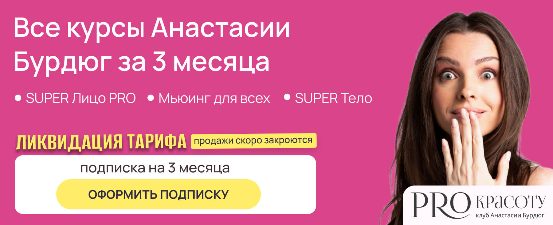 3 месяца, 90 дней… что можно успеть за это время? Сейчас я вам расскажу! ✋ | | | | | Освоить 9 новых продвинутых упражнений и 3 комплекса для осанки из курса SUPER Лицо PRO, благодаря которым вы: | | | | | | усиленно проработаете проблемные зоны — мешки и впадины под глазами, опущенные щеки, сниженный тонус губ; | | | | скорректируете технику выполнения упражнений; | | | | ускорите результат от гимнастики; | | | | обретете здоровую осанку; | | | | сможете создать свой комплекс из упражнений, подходящих именно вам. | | | | | | Внедрить в свою жизнь уникальную методику естественной коррекции прикуса из курса «Мьюинг для всех», которая поможет вам: | | | | | | избавиться от второго подбородка; | | | | подтянуть овал лица без хирургического вмешательства; | | | | сделать скулы более четкими и выразительными. | | | | | | Подключить простые, но эффективные упражнения для тела из курса SUPER Тело, с помощью которых вы: | | | | | | улучшите самочувствие, получите заряд энергии на каждый день; | | | | укрепите тело и улучшите фигуру; | | | | избавитесь от болей в спине и суставах; | | | | | Все эти результаты могут стать вашими уже через 3 месяца в клубе PRO Красоту! ❤️ | | | | Мы закрываем продажи 3-месячной подписки: у вас есть последняя возможность оформить ее всего за 1880 рублей.