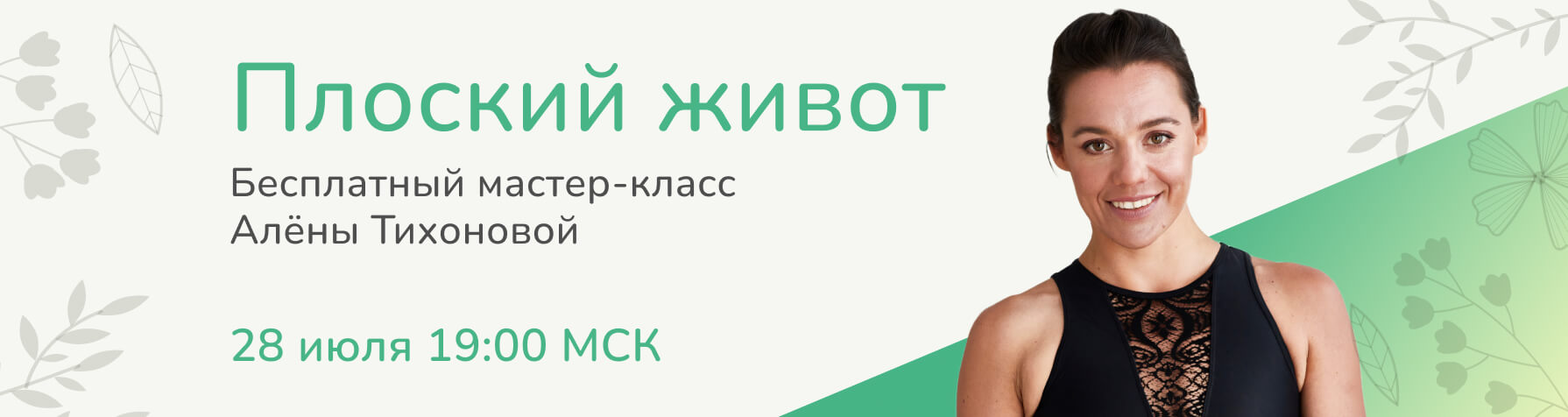 ⚡ Уже завтра, 28 июля в 19:00 по Москве, Алена Тихонова проведет бесплатный мастер-класс «Плоский живот». Приходите на эфир и ощутите сами ценность живого занятия с тренером. |