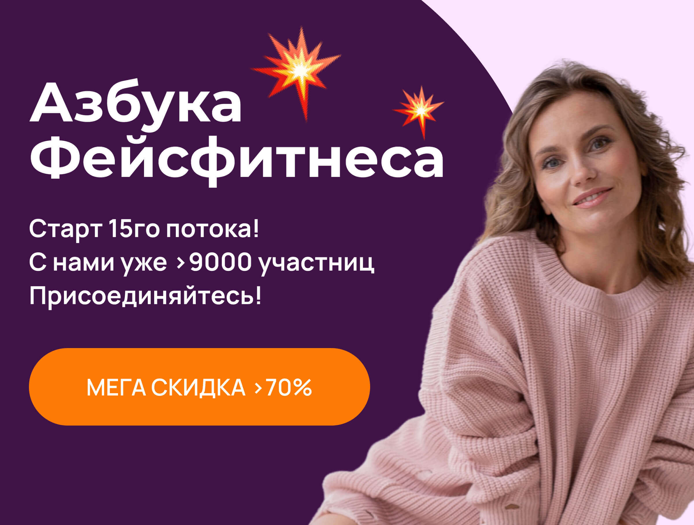 ⭐️ Представьте, что вы с утра просыпаетесь, смотрите в зеркало и видите перед собой подтянутый овал лица без отёков, заломов и брылей ❤️ | | | | У меня есть метод, с помощью которого эти мечты станут реальностью! | | | | Сейчас идёт набор на 15 поток курса Азбука Фейсфитнеса. Присоединяйтесь — на старте продаж цена ниже на 70% ⚡️ | | | | ⏬ Что добавить к фейсфитнесу, чтобы предупредить опущение тканей лица вниз? | | | | | Следите за качеством питания. | | | | Высыпайтесь и поддерживайте водный баланс в организме. | | | | Занимайтесь спортом, гуляйте на свежем воздухе. | | | | Поддерживайте осанку и здоровье спины. | | | | | При покупке курса Азбука Фейсфитнеса вы как раз получите в подарoк упражнение на осанку — оно поможет быстрее убрать второй подбородок и носогубные складки ⚡️ | | | | При покупке курса Азбука Фейстфитнеса вам также станут доступны: | | | | | видеоуроки с комплексами упражнений на все мышцы лица. | | | | доступ в закрытый чат с автором курса и куратором; | | | | онлайн-тренировки с Софи Шайн; | | | | личные консультации с экспертом; | | | | методичка со всеми упражнениями. | | | | | ⚡️Мы только начали набор на 15 поток курса, а значит — установили самые привлекательные цeны.