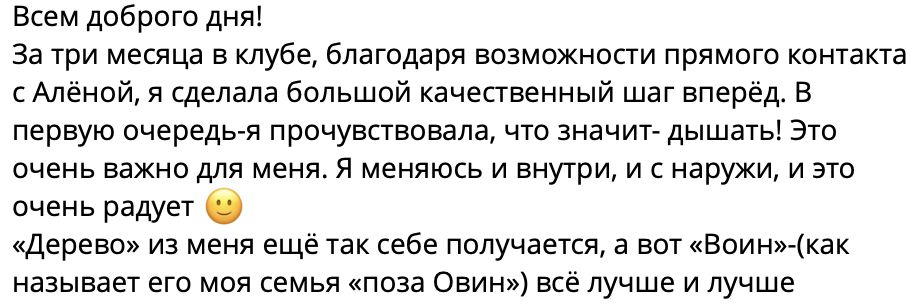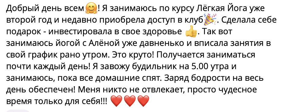 Однако для тех, кто хочет «брать от клуба всё», мы стараемся дать как можно больше разнообразных материалов. А также зарядить вас мотивацией на покорение новых вершин и достижения самых ярких результатов, превосходящих изначальные ожидания! Прямо как эти: | | | | Как бы вам ни было комфортнее заниматься, делайте как чувствуете. На этом цепочка приветственных писем подходит к концу, так что услышимся в эфирах и нашем чате ❤️ | | | | С ❤, Алёна Тихонова и команда AnyClass | | | | | | Вы получили это письмо, потому что оставили свои данные на сайте anyclass.com | | | |