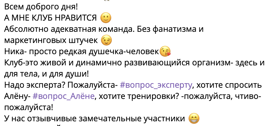 Я ненадолго, просто хочу напомнить о нашем закрытом уютном чатике в Telegram и статьях. Понимаю, что не все любят активно участвовать в клубной жизни, однако у нас там и правда очень уютно и по-домашнему. Мы с участницами обсуждаем акцент недели, делимся лайфхаками по теме✅