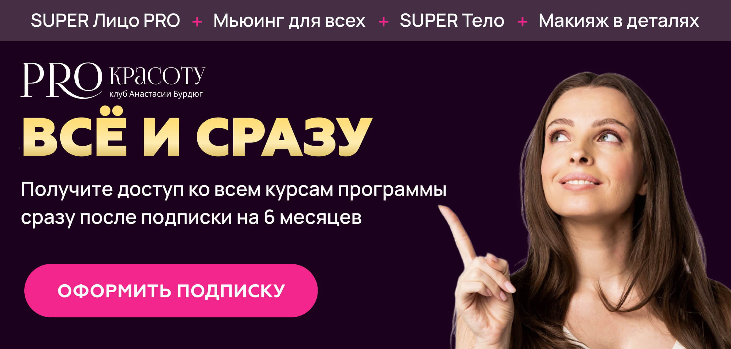 Во время мастер-класса я подскажу: | | | | | какие ошибки вы допускаете при выполнении упражнений и как их избежать; | | | | как сделать гимнастику более эффективной; | | | | какой комплекс упражнений лучше подойдёт для достижения именно ваших целей. | | | | | | Запись мастер-класса сохранится на платформе, поэтому, если время прямого эфира для вас неудобно, вы сможете посмотреть его в удобное для вас время. | | | | | ⭐️ При оформлении подписки у вас будет доступ не только к ближайшему мастер-классу, но и ко всем прошлым — вы сразу же сможете уберечь себя от частых ошибок при выполнении гимнастики для лица. | | | | Попасть на мастер-класс может любая участница клуба PRO Красоту. Вступайте в клуб и получайте возможность индивидуального разбора лично от меня ⚡️ | | | | При вступлении в клуб PRO Красоту сейчас вы также СРАЗУ получите доступ к: | | | | | моим продвинутым курсам: SUPER Лицо PRO, Мьюинг, SUPER Тело; | | | | курсу от звездного визажиста — Макияж в деталях; | | | | библиотеке материалов, которая каждый день пополняется статьями и видеороликами на темы красоты, здоровья и психологии; | | | | закрытому чату с единомышленницами, где царит поддерживающая и мотивирующая атмосфера. | | | | | Обычно в клубе PRO Красоту курсы открываются последовательно — раз в месяц согласно программе «Путь к SUPER лицу». При оформлении подписки на 6 месяцев вы получите все курсы РАЗОМ — сможете сами выбрать, в какой последовательности их проходить ❤️ | | | | | | Вы получили это письмо, потому что оставили свои данные на сайте anyclass.com | | | |