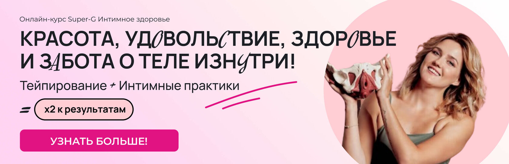 ⚡️ Благодаря курсу SUPER-G Интимное здоровье ваша жизнь заиграет новыми красками. Только для учениц Екатерины Невзоровой мы снизили цену 6-ти месячного доступа курса ⚡️ | | | | Присоединяйтесь к курсу прямо сейчас и получите полный комплекс практик для улучшения интимного здоровья и удовольствия: 6 в 1! | | | | Важно сделать тренировки регулярными для достижения нужного эффекта.