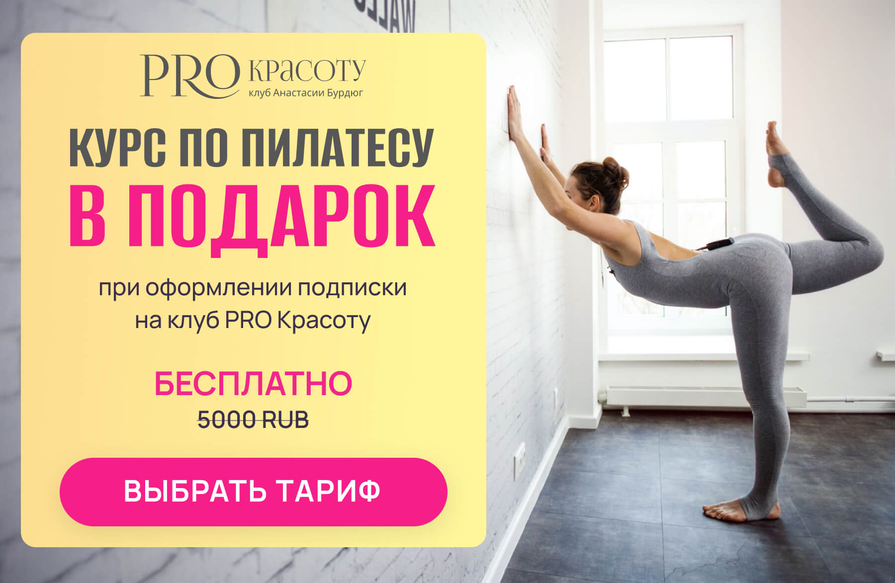 Вас ждут: | | | | | 80 эффективных упражнений по методу пилатес | | | | 7 блоков в рамках каждой тренировки | | | | | И все это бесплатно при оформлении подписки на клуб PRO Красоту. ✨ | | | | Успейте получить курс по пилатесу в подарок сегодня, акция завершится в 23:59! Переходите на сайт, узнайте, что еще ждет вас в клубе и оформляйте подписку. | | | | | | Вы получили это письмо, потому что оставили свои данные на сайте anyclass.com | | | |