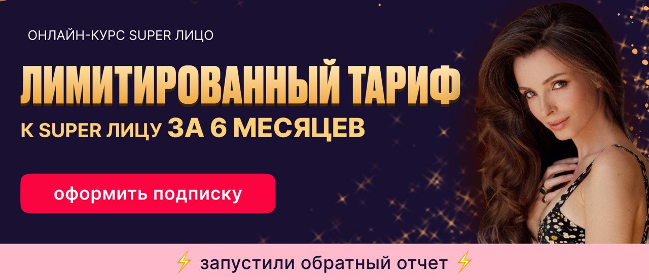 ⭐️ Меня зовут Анастасия Бурдюг, вот уже 14 лет я помогаю девушкам по всему миру молодеть на 10−15 лет без уколов красоты и хирургических вмешательств! | | | | Каждая вторая девушка видит улучшения уже после одного занятия, а после регулярных тренировок вас ждут следующие результаты: | | | | | избавитесь от отечности и мешков под глазами; | | | | уменьшите морщинки и заломы или избавитесь от них вовсе; | | | | устраните асимметрию лица; | | | | забудете про второй подбородок, брыли и носогубные складки. | | | | | Программу курса SUPER Лицо прошли более 500 000 девушек. Их результаты говорят сами за себя! | | | | Только для учениц Екатерины Невзоровой я подготовила специальные условия на занятия гимнастикой для лица! Получите лимитированный тариф на 6 месяцев по самой низкой цене! | | | | За полгода регулярных занятий ваше лицо кардинально преобразится, а окружающие перестанут верить цифрам в паспорте. ❤️ | | | | После покупки курса SUPER Лицо вам станут доступны: | | | | | 31 упражнение для 57 мышц нашего лица | | | | | Первые результаты УЖЕ ЧЕРЕЗ НЕДЕЛЮ регулярных занятий. Комбинация тейпирования и гимнастики буквально сотрет возрастные изменения с вашего лица и продлит молодость на долгие годы!