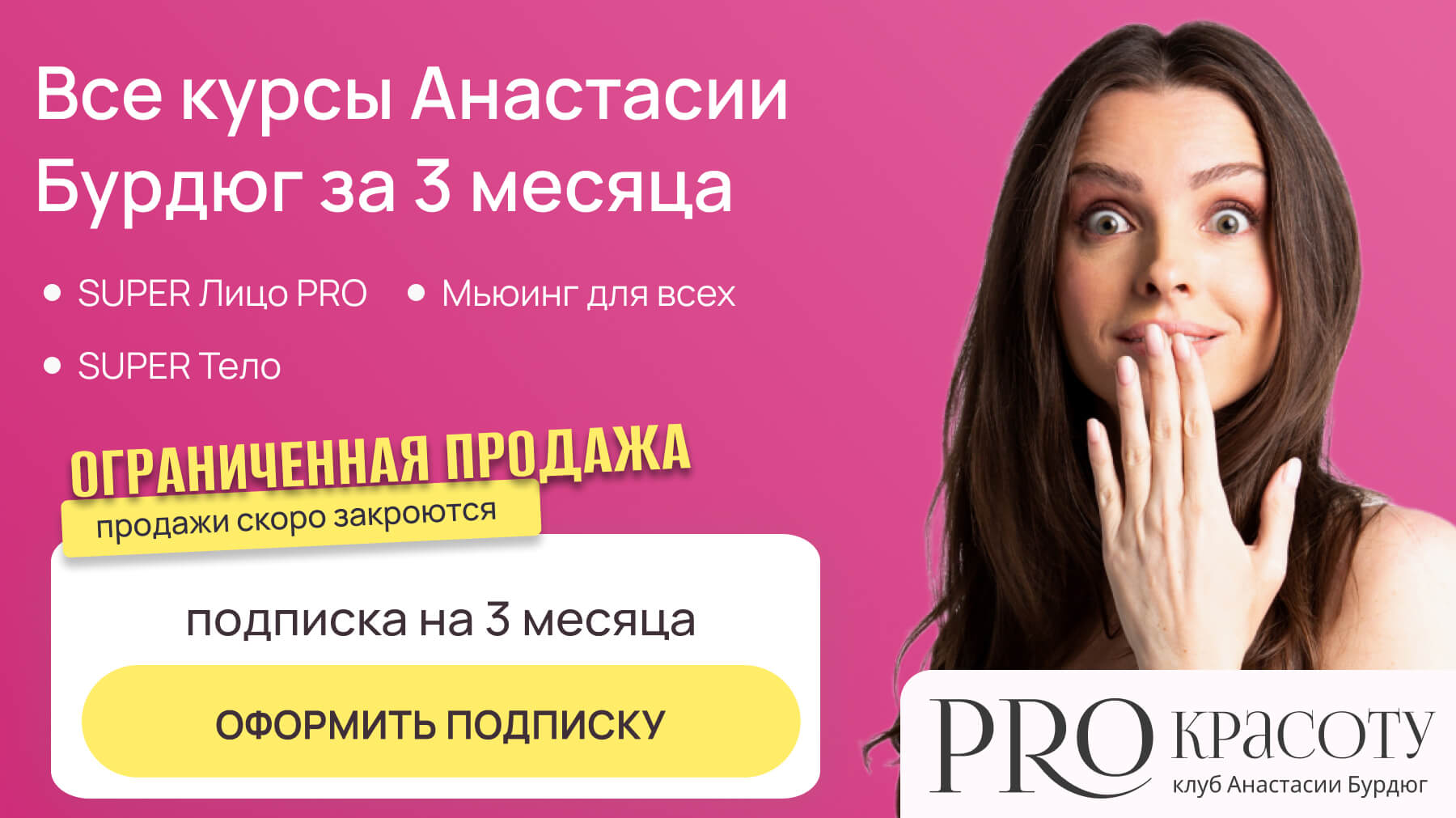 бесплатно при оформлении подписки на клуб PRO Красоту! Он откроется через 3 недели тренировок в рамках программы «Путь к SUPER Лицу».