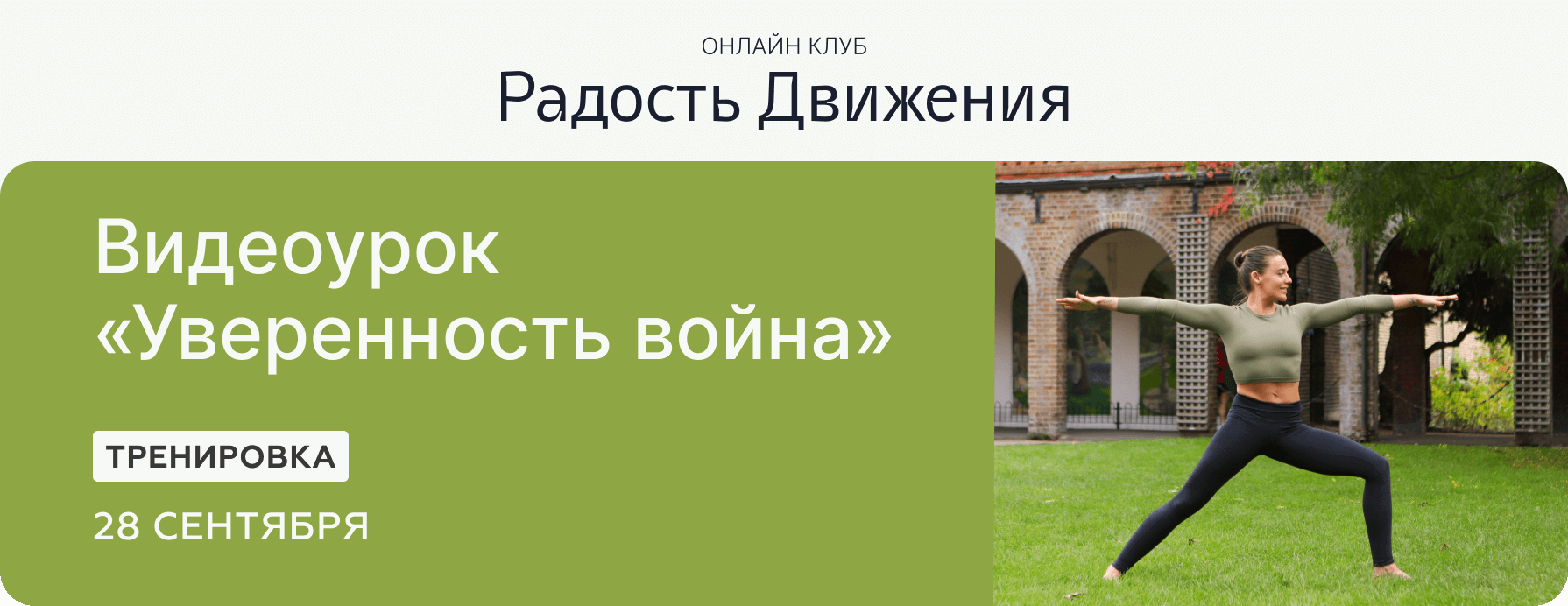 «Уверенность война»Тема текущей недели — чувство спокойной решимости, уверенности в себе и внутренней опоры. Сделаем с вами тренировку для отличного начала дня и завершим её медитацией, которая позволит поймать эту гармонию с собой и поверить в себя.