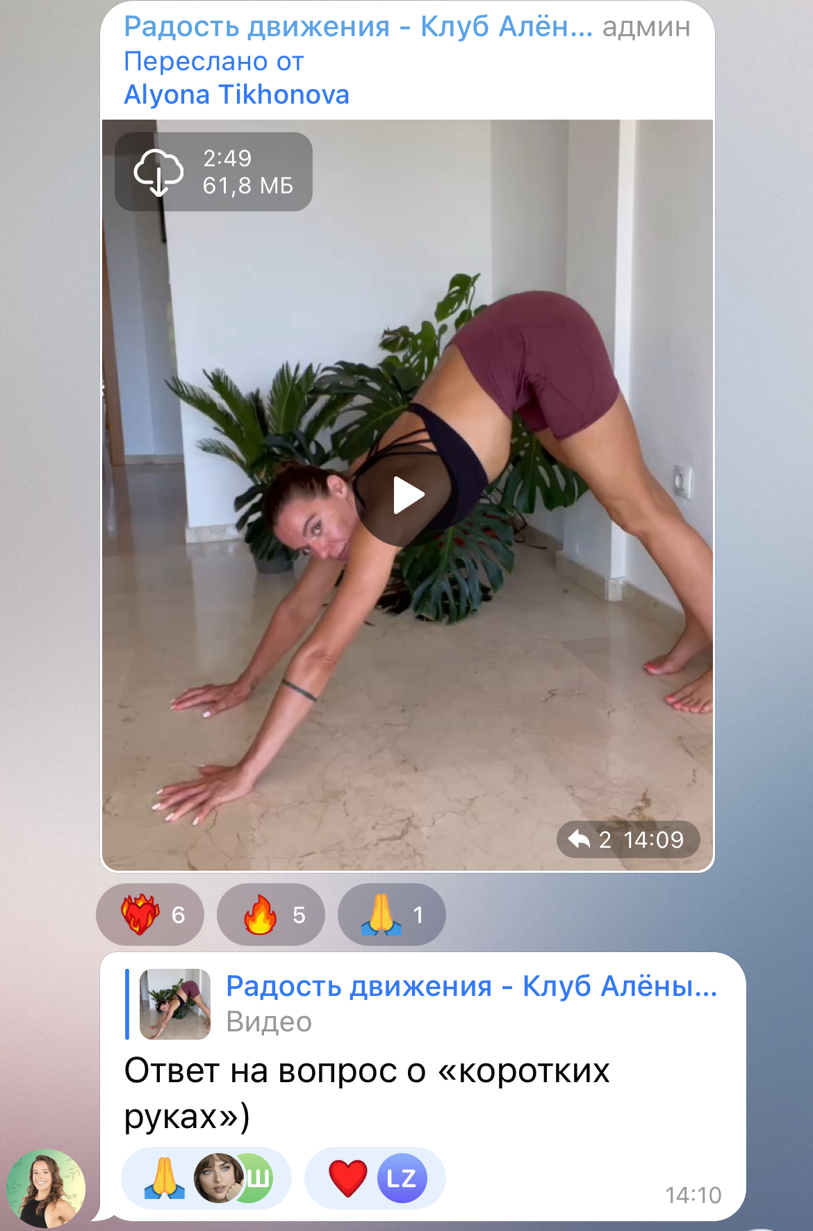 И множество других ценных тематических эфиров и специальных тренировок! | | | | ✅ Выложены отдельные комплексы тренировок от автора клуба — упражнения на стопы и на колени.