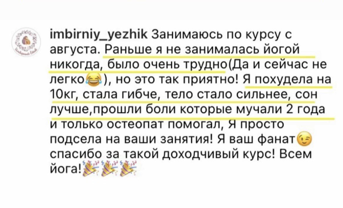 ☘️ здоровое и красивое тело всего за 30 минут в день; ☘️ 60 упражнений на все группы мышц с подробным разбором; ☘️ бесплатные консультации экспертов по технике или любым вопросам; ☘️ комфортные тренировки прямо у вас дома. | | | | Более 75 000 учениц уже прошли курс Легкая йога и убедились в его эффективности. Присоединяйтесь и вы! | | | | | | | | Вы получили это письмо, потому что оставили свои данные на сайте anyclass.com | | | |