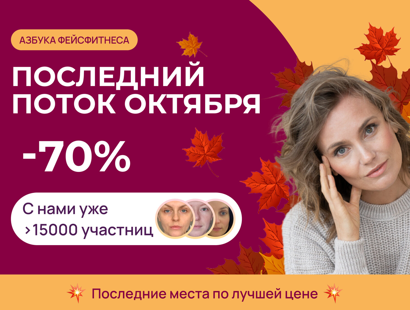 Взгляните на моих учениц ⏬ | | | | Только СУТКИ можно приобрести курс Азбука Фейстфинеса со cкидкой 70% ⏬ | | | | При оформлении подписки вы получите: | | | | | Основной курс Азбука Фейсфитнеса | | | | Онлайн-тренировки с автором курса | | | | Упражнения для продвинутых | | | | Закрытый чат с Софи и кураторами | | | | | Это лучшая цена для продления молодости и красоты. ❌ Больше такого предложения НЕ БУДЕТ ❌ | | | | После занятий на курсе Азбука Фейсфитнеса вас перестанут беспокоить такие проблемы, как: