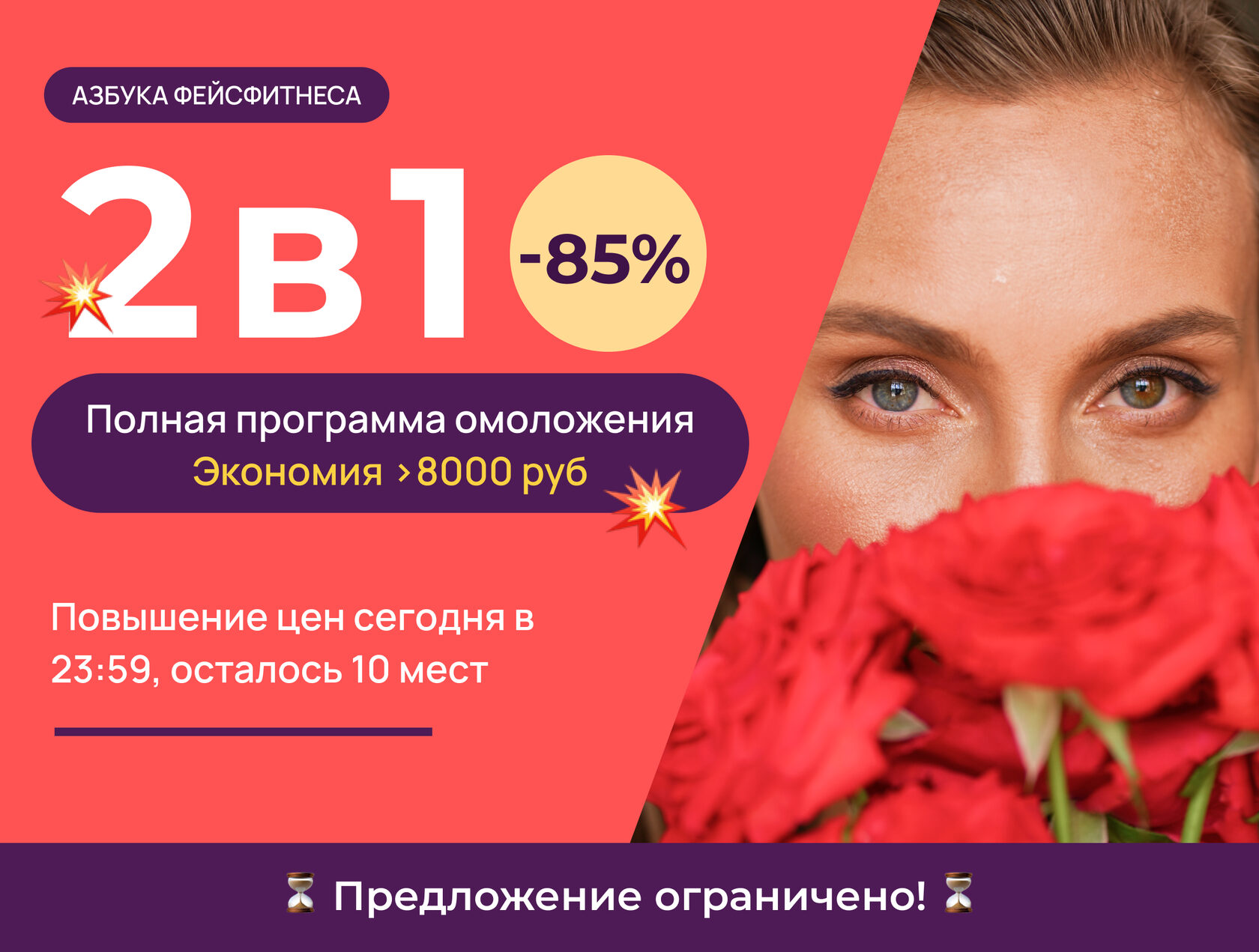 | 12 упражнений базового курса + более 120 упражнений продвинутого курса + 10 консультаций с экспертами и всё это со cкидкой 85% ⚡️ | | | | Это предложение означает, что ЧЁРНАЯ ПЯТНИЦA стартовала, и до 23:59 вы можете урвать 1 из 10 оставшихся мест на курсе по самой низкой цeне этого года! | | | | Программы фейсфитнеса от Софи Шайн помогают избавиться от возрастных изменений, самым ярким из которых является поплывший овал лица. Основные причины этого явления: | | | | 1️⃣ колебания веса — кожа начинает растягиваться и обвисать; 2️⃣ отёки из-за малоподвижного образа жизни, неправильного питания и вредных привычек; 3️⃣ неправильный уход за кожей; 4️⃣ проблемы с осанкой, которые ведут к появлению второго подбородка и носогубных складок. | | | | Скорректировать признаки возраста можно с помощью косметологии и пластики, только результат от этого будет недолговременный, а побочные эффекты могут не оправдать рисков. Фейсфитнес — это та же подтяжка лица, но без негативных последствий. Начните профилактику и проработку возрастных изменений с гимнастики для лица и вам уже не захочется пробовать другие процедуры ⬇️ | | | | Переходите на сайт, там есть 2 тарифа под разные запросы: | | | | 1️⃣ Первый тариф. Базовый курс “Азбука Фейсфитнеса”+ 5 консультаций | | | | Базовая программа упражнений с эффектом лифтинга и круговой подтяжки лица. Подойдёт тем, кто хочет попробовать фейсфитнес и ощутить первые результаты. | | | | 2️⃣ Второй тариф. Базовый курс “Азбука фейсфитнеса” + Продвинутый курс “Энциклопедия Фейсфитнеса” + 10 консультаций | | | | Покупая данный тариф вы экономите 8000 руб ⚡️ | | | | В Тариф №2 включены более 120-ти упражнений, которые в комплексе с базовым курсом помогут достичь более видимых результатов и точечно проработать более сложные проблемные зоны. | | | | ❗️Секрет от нашей команды: при покупке 2 тарифа вы получите более 120-ти упражнений вместо стандартных 12 и 10 консультаций вместо 5, а разница между тарифами минимальна! Скорее заглядывайте на сайт и выбирайте подходящий вам. | | | | | | Вы получили это письмо, потому что оставили свои данные на сайте anyclass.com | | | |