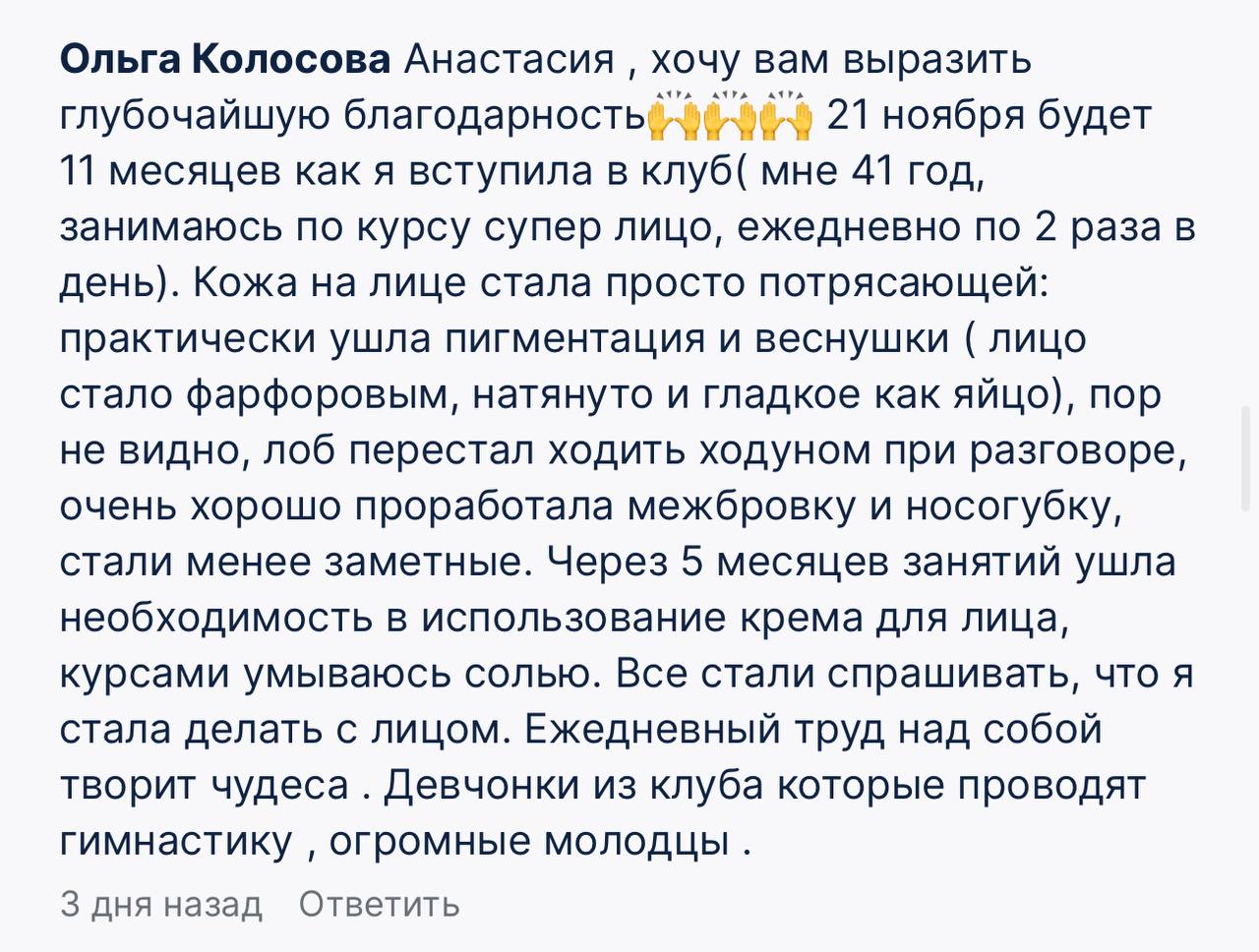 | Одной из самых больших трудностей, с которой сталкиваются девушки, является отсутствие регулярности в тренировках. А ведь именно это самое важное для получения яркого и стойкого результата от гимнастики! | | | | Нужна большая сила воли, чтобы заставить себя заниматься в одиночку. Начинаются периодические пропуски, и вот тренировки и вовсе происходят от случая к случаю. | | | | Заниматься же в компании всегда легче и веселее! Именно поэтому в клубе PRO Красоту теперь проходят ежедневные групповые тренировки участниц по видеосвязи! Прямо в закрытом чате в Telegram: удобно и под рукой. | | | | Присоединяйтесь к клубу PRO Красоту, привейте себе регулярность в тренировках и наслаждайтесь полученными результатами омоложения. ❤️ | | | | Стоимость подписки на специальных праздничных условиях: | | | | 1 месяц = 690 рублей* *Первый платеж по подписке, далее продление по 1190 руб. в месяц | | | | 6 месяцев = 2990 рублей* *Первый платеж по подписке, далее продление по 3490 руб. за 6 месяцев | | | | На ежедневных тренировках по видеосвязи участницы: | | | - делятся опытом – многие ученицы занимаются несколько лет;