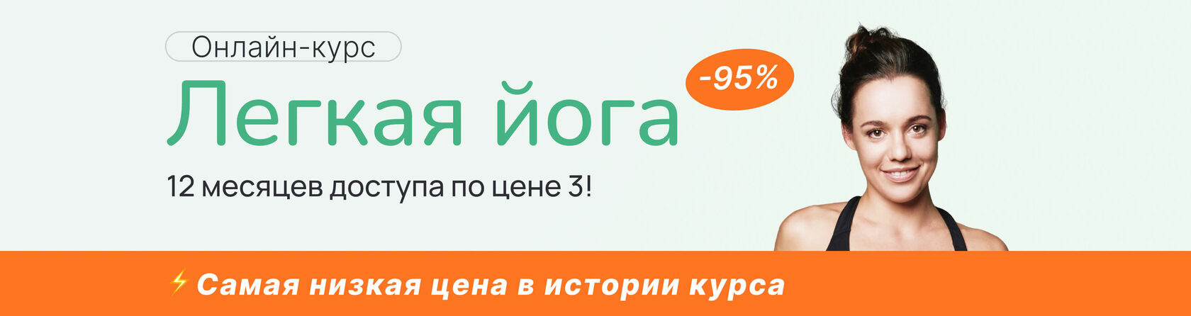 | Лишние сантиметры на талии и бедрах, целлюлит и даже свисающий животик — эти распространенные проблемы часто беспокоят женщин. Необходимо помнить, что каждая из вас уникальна и красива, однако перечисленные недостатки могут подорвать вашу уверенность и веру в свою собственную привлекательность. Похоже, что они навсегда “сели” на хрупкие женские плечи... Как быть? | | | | Приобретая курс Легкая йога, вы получаете уникальное сочетание двух важных аспектов: подтянутое тело и спокойный разум. | | | | Курс Легкая йога не является магической панацеей с временным эффектом, это эффективный и проверенный комплекс упражнений, который обеспечивает результаты каждой девушке и помогает почувствовать себя лучше! Не только физически, но и морально. | | | | Только сейчас, приобретая курс Легкая йога со скидкой 95% и годовым доступом, вдобавок вы получаете подарок — практикум «5 волшебных техник йоги»! Поторопитесь, пока черная пятница не закончилась. | | | | Практикум «5 волшебных техник йоги» включает в себя целых 5 разнообразных тренировок для различных целей: гибкость, спокойствие, бодрость, ускорение обмена веществ и другое. | | | | Практикум поможет дополнить тренировки с курса Легкая йога и внесет разнообразие в вашу практику! Обычная стоимость практикума — 1690 рублей. Вы же получите его бесплатно вместе с курсом Легкая йога! ❤️ | | | | Переходите на сайт и получите свой подарок прямо сейчас ⤵️ | | | | Давайте представим, как изменится ваша жизнь, если вы достигните формы тела, о которой всегда мечтали? | | | - меньше комплексов и неуверенности в себе;