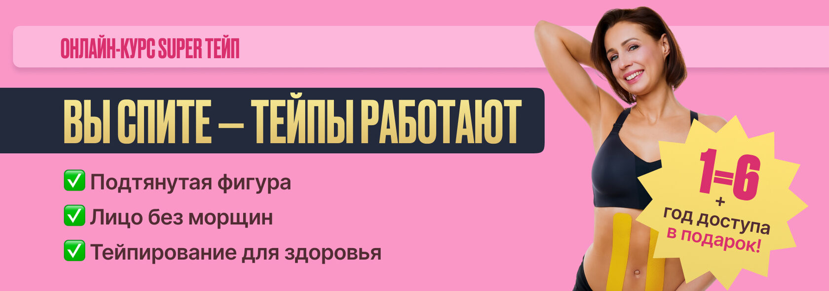 | Давно присматриваетесь к тейпированию, но не можете определиться, какой курс подойдёт вам лучше? Тогда это предложение точно для вас: сегодня вы можете оплатить 1 курс и получить ещё 5 в пoдарок! | | | | ⚡️ 6 в 1 – это легендарное комбо из лучших курсов по тейпированию: | | | | | лицо — вы избавитесь от отёков, морщинок на лбу, носогубных складок и нависшего века, а также подтяните овал лица; | | | | живот — тонкая талия и подтянутый животик не заставят себя ждать; | | | | спина и руки — вы забудете о болях в спине и шее; | | | | ноги и ягодицы — у вас будут красивые колени, подтянутая попа и стройные ноги; | | | | грудь — упругая и подтянутая грудь станет реальностью; | | | | тейпы против простуды — у вас под рукой будет палочка-выручалочка на случай гриппа и ОРВИ. | | | | | Посмотрите, каких результатов добиваются мои ученицы ❤️ | | | | Успейте приобрести 6 курсов SUPER Тейп с МАКСИМАЛЬНОЙ скидкой в честь чёрной пятницы ⚡️ | | | | | | Вы получили это письмо, потому что оставили свои данные на сайте anyclass.com | | | |