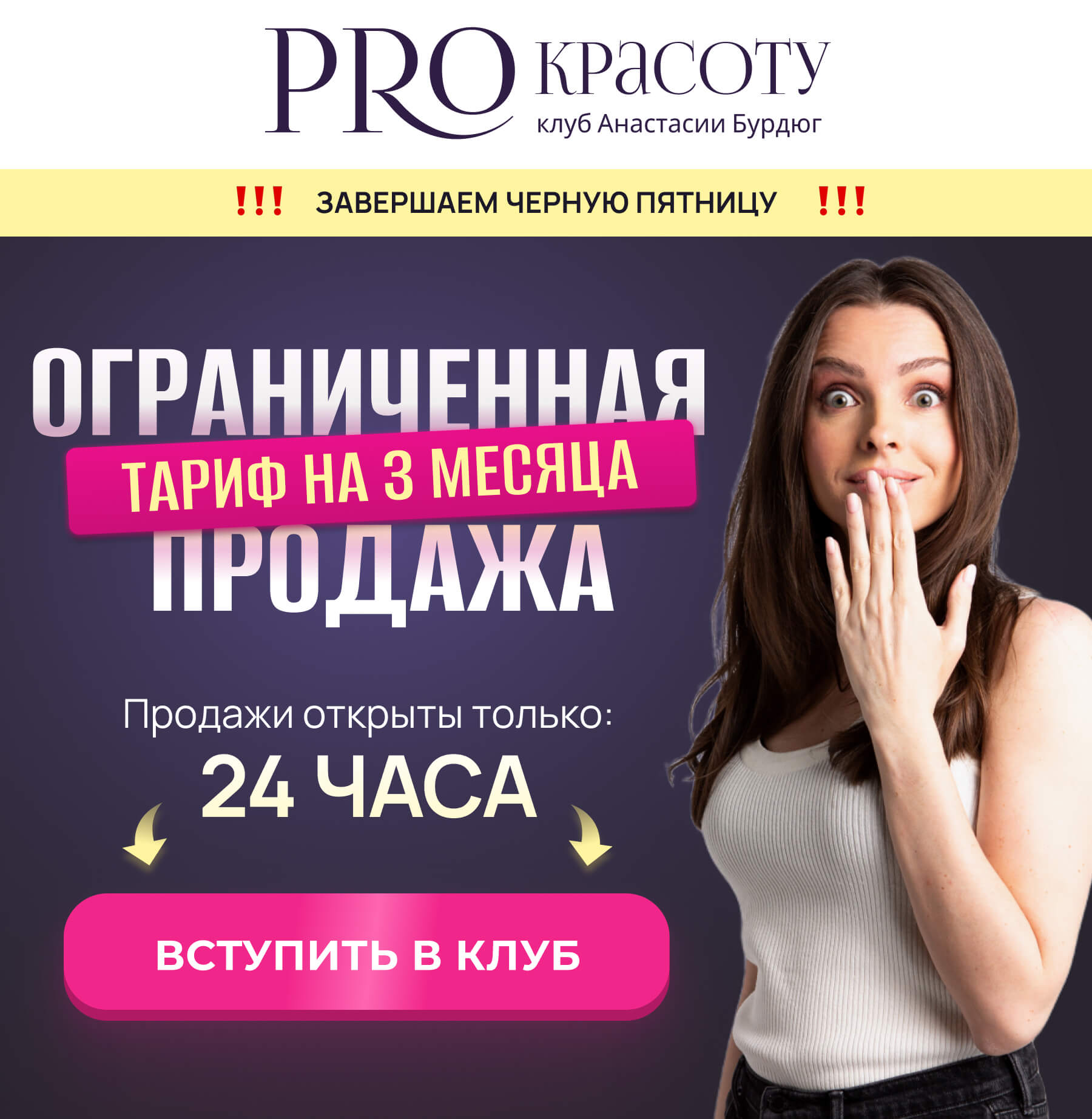 | Предпочитаете сочетать разные способы заботы о красоте и здоровье? Тогда это предложение точно для вас! | | | | ⚡️ Тариф на 3 месяца с моментальным открытием ⚡️ всех курсов Анастасии Бурдюг | | | | “Каких результатов я смогу добиться за 3 месяца?” | | | | 1️⃣ С помощью курса SUPER Лицо PRO вы проработаете самые “упрямые” зоны: носогубные складки, брыли и мешки под глазами. | | | | 2️⃣ Курс Мьюинг для всех поможет приобрести идеальный угол красоты: отсутствие второго подбородка и отёчности, а также очерченные скулы. | | | | 3️⃣ На курсе SUPER Тело вы научитесь выполнять базовые асаны под руководством личного тренера Анастасии Бурдюг, даже если никогда раньше не занимались йогой. Они не только подарят вам красивую осанку, подтянутое тело, заряд энергии, но и улучшат внешний вид лица. | | | | Помимо самих курсов, вас ждут все преимущества клуба PRO Красоту: | | | - прямые эфиры с Анастасией и приглашёнными экспертами,