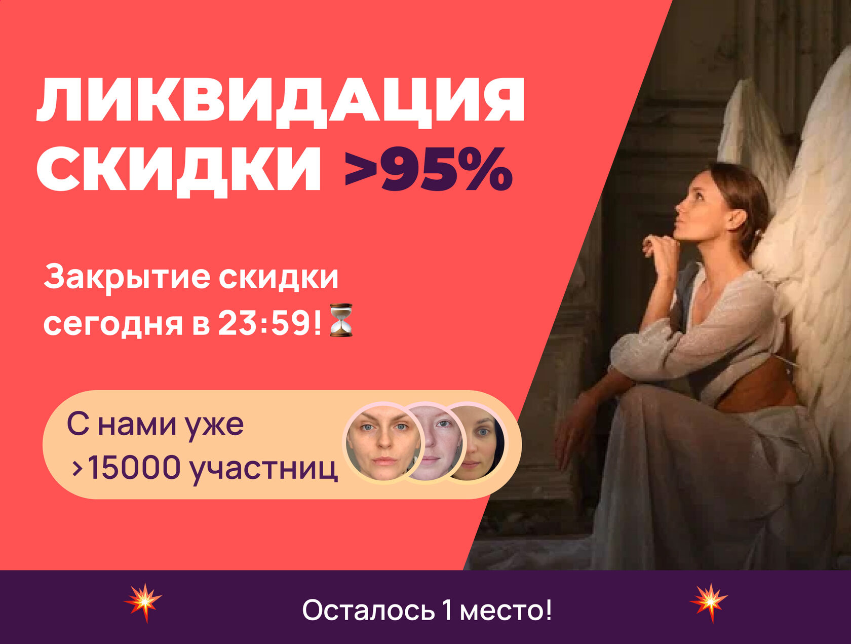 | Столкнулись с проблемой нависших век? Косметологи советуют пластику, а вы не готовы к таким радикальным мерам? Мы вас понимаем, ведь можно столкнуться с неприятными побочками: | | | | ❌ выворот нижнего века (эктропион), который происходит из-за удаления слишком большого количества тканей; ❌ повышенная сухость и слезоточивость глаз; ❌ асимметрия век. | | | | Фейстфитнес — безопасная альтернатива, которая поможет вам решить проблему нависшего века и получить открытый взгляд, а также сгладить и другие возрастные признаки: брыли, носогубки, межбровку, кольца Венеры. | | | | ⚡️ До 23:59 одной из вас посчастливиться получить доступ к курсу Азбука Фейстфитнеса со cкидкой >95%. Да, осталось всего 1 место, поэтому поспешите! | | | | Более 15 000 учениц прошли курс и получили потрясающие результаты ❤️ | | | | Помимо курса, вы также получите: | | | | | 5 консультаций от экспертов; | | | | доступ в закрытый чат с автором курса; | | | | онлайн-тренировки с Софи; | | | | бонусные упражнения: урок на осанку и нос, а также комплекс на нижнюю треть лица для продвинутых. | | | | | Успейте до 23:59 занять оставшееся место со cкидкой >95% | | | | | | Вы получили это письмо, потому что оставили свои данные на сайте anyclass.com | | | |
