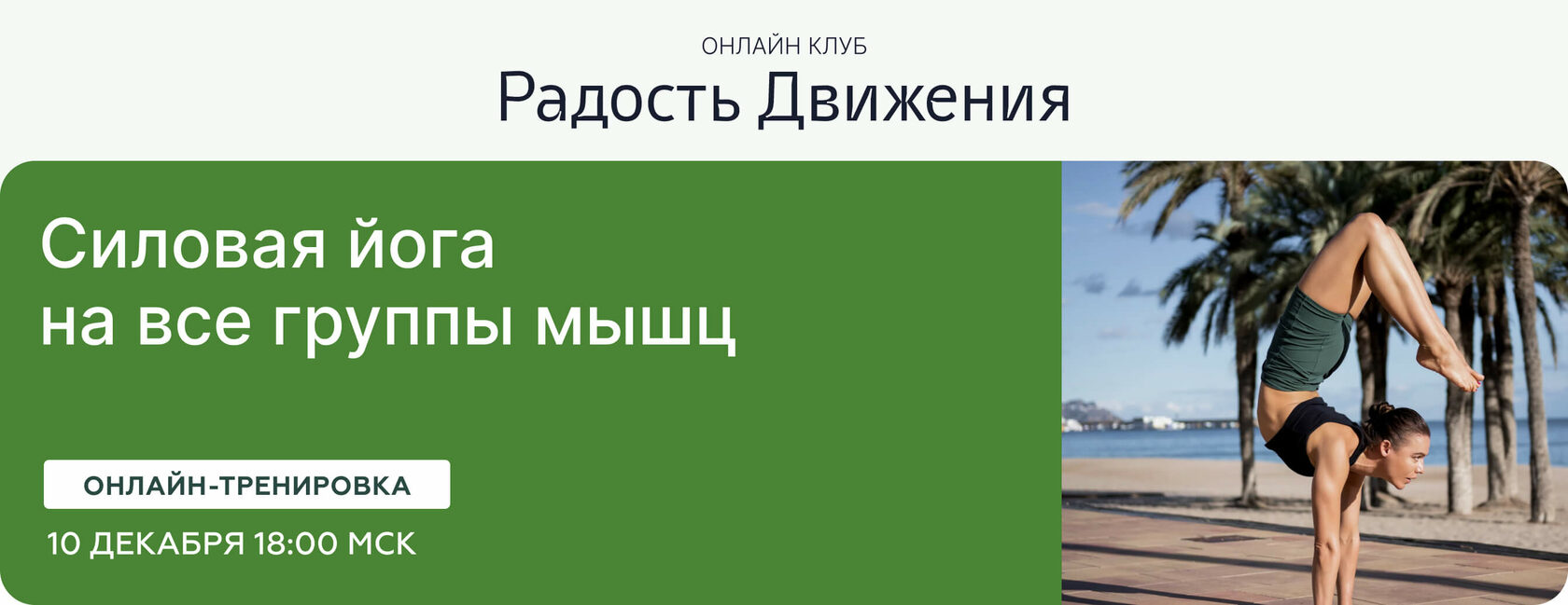 | Привет, дорогие участницы! | | | | ⏰ 10 декабря (ВС) в 18:00 (МСК) ✅ «Силовая йога на все группы мышц» | | | | Силовые — это не только борьба с запасными см в талии, это ещё и прекрасный антистресс, улучшатель настроения и секрет молодости. Тренировки на выносливость способствуют выработке гормона роста, который вернёт телу и организму молодость и бодрость. | | | | ✨ Развеем стереотип о том, что йога — это только растяжка и дыхательные практики. ✨ Хорошенько проработаем все группы мышц и почувствуем, как они работают. ✨ Выполним жгучую омолаживающую тренировку, которая при регулярном выполнении сделает силует более подтянутым, а фигуру более точёной. | | | | Противопоказания: нет. Оборудование: нет. | | | | Буду рада, если вы перед эфиром оставите в комментариях под постом свои вопросы по теме эфира, чтобы мы могли перед тренировкой сразу их обсудить. Не стесняйтесь ;) | | | | ❗️ Важное уточнение: не стесняйтесь приходить с камерами для максимально эффективных занятий! На платформе в записи останется тренировка, где будет видно только Алёну. | | | | Занимайтесь спокойно и в удовольствие ✨ | | | | Как принять участие в практике? | | | | Всё просто! На нашей платформе будет указана ссылка на встречу в Zoom. В назначенное время вы сможете присоединиться, а по окончании тренировки на платформе будет доступна запись. | | | | | | Вы получили это письмо, потому что оставили свои данные на сайте anyclass.com | | | |
