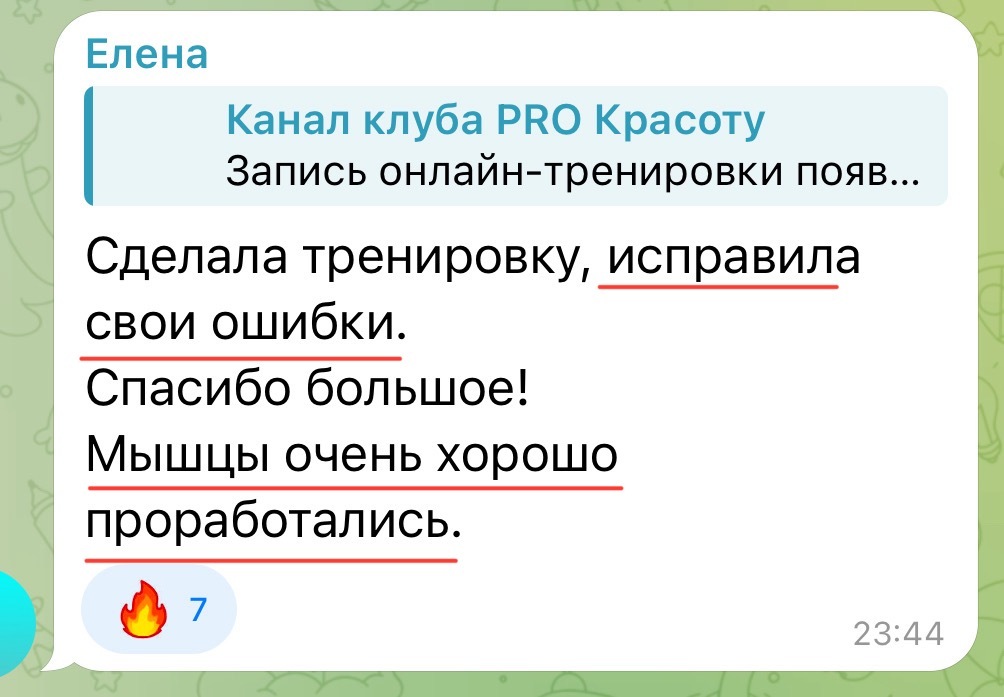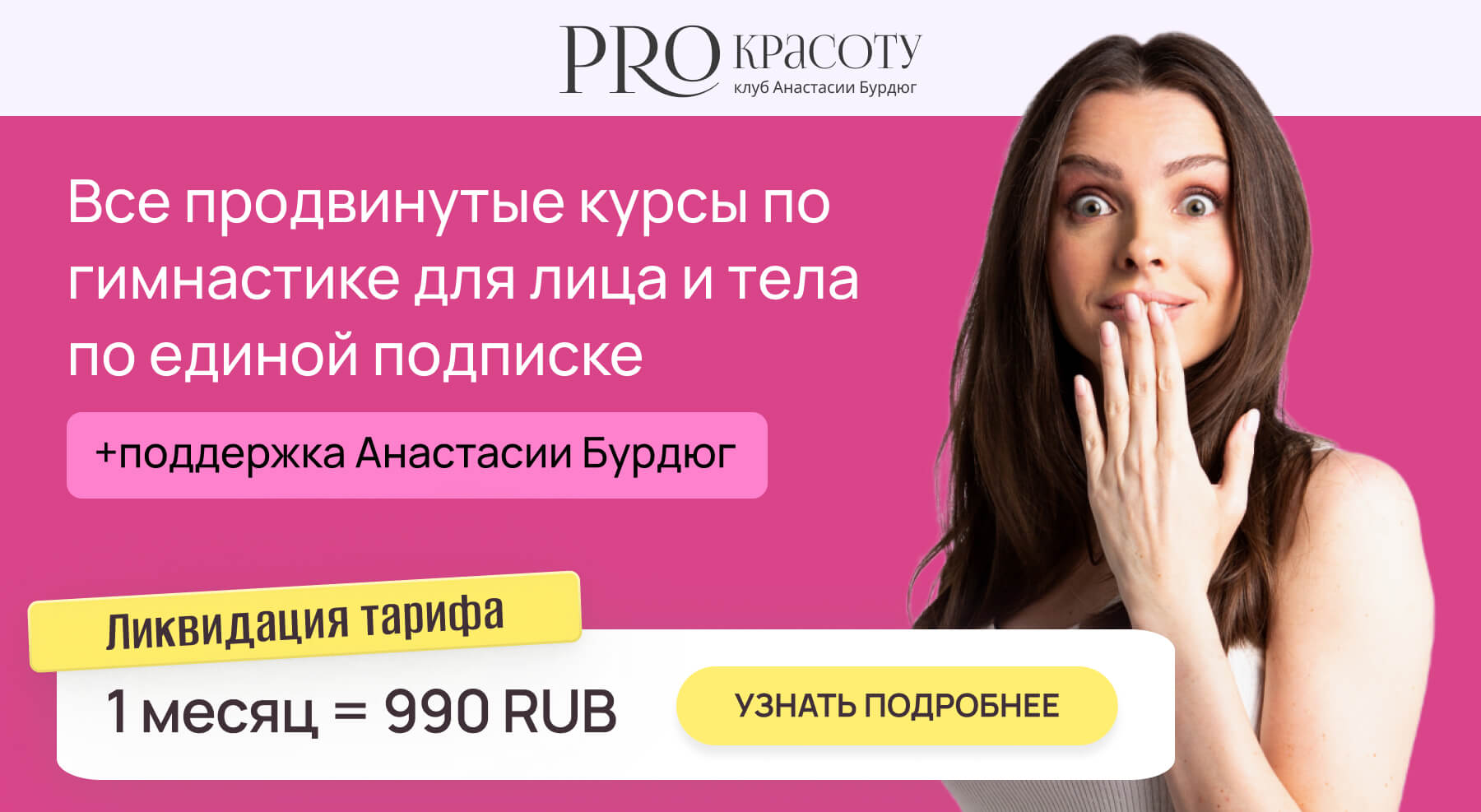 | | | | Видеообзор правильного выполнения упражнений на лоб от Анастасии Бурдюг есть в библиотеке клуба PRO Красоту! | | | | Присоединяйтесь к клубу, смотрите этот и другие обзоры и делайте гимнастику для лица без ошибок! | | | | Помимо множества видеообзоров, в клубе вас ждут регулярные онлайн-мероприятия для корректировки техники — тренировки и мастер-классы. | | | | ⚡️ Мастер-класс позволяет получить индивидуальный разбор своей техники лично от Анастасии Бурдюг. Наставница исправляет недочеты участницы в прямом эфире, а зрители замечают свои ошибки на ее примере. Попасть на мастер-класс может каждая участница клуба PRO Красоту! | | | | ⚡️ В рамках онлайн-тренировки вы занимаетесь гимнастикой для лица вместе с Анастасией, перенимаете ее опыт, выстраиваете технику выполнения. Наставница лично комментирует недочеты участниц и объясняет, как их исправить. | | | | Уже знакомые упражнения откроются вам заново с правильной техникой! Девушки отмечают: “Лицо ГОРИТ после тренировки, эффективность чувствуется сразу”. ✨ | | | | Кроме того, это колоссальный заряд мотивации. Вы тренируетесь в команде с единомышленницами. Такой формат наиболее близок к живым тренингам Анастасии. | | | | Сейчас в клубе PRO Красоту проходит ликвидация тарифа на 1 месяц. Оформите подписку всего за 990 рублей и ощутите всю пользу сообщества! | | | | | | Вы получили это письмо, потому что оставили свои данные на сайте anyclass.com | | | |