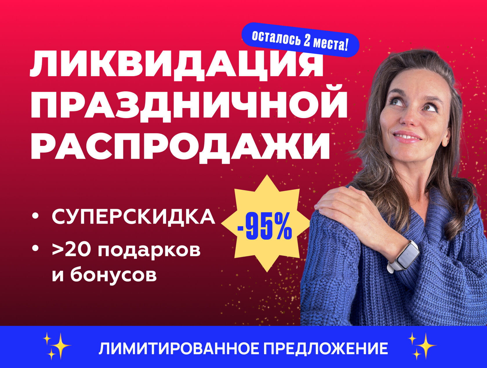 | Ох уж эти праздники… Весело, вкусно и ОТЁЧНО! ☹️ | | | | Соленья и сладкие алкогольные напитки — главные «провокаторы» отеков. Лицо буквально надувается даже у обладательниц стройной фигуры. | | | | Но не стоит грустить, решение есть! Нужно лишь чуточку помочь вашему лицу и телу в каникулы ❤️ | | | | Для этого я подготовила готовые комплексы упражнений на 10-15 минут. Приобретайте курс Азбука Фейсфитнеса и получайте к ним доступ — осталось всего 2 места со cкидкой 95%. Каждую новую ученицу сегодня ждут более 20 подарков от Софи ✨ | | | | Сейчас идёт ликвидaция праздничной рaспродажи! Вы можете выгодно приобрести доступ ко всем материалам на ГОД и сэкономить более 10 000 рублей ⚡️ | | | | Благодаря упражнениям из Азбуки Фейсфитнеса вы не просто справитесь с отёчностью, но и: | | | | ✅ проработаете все зоны лица и шеи; ✅ подтянете овал лица; ✅ уменьшите выраженность морщин; ✅ ускорите процесс естественного омоложения. | | | | И какой же новый год без пoдарков! При покупке курса сегодня вы получите: | | | | | 5 консультаций с экспертом — разборы вашей техники выполнения упражнений. | | | | Бонусные тренировки с Софи 2 раза в месяц, на которых наставница даёт индивидуальные рекомендации! | | | | 7 дополнительных видео для лучшего результата. | | | | 2 комплекса для утра и вечера с потрясающим аудиосопровождением от Софи. | | | | >10 дополнительных эфиров в записи С СЕКРЕТНЫМИ ТЕХНИКАМИ. | | | | Методичка с базовыми упражнениями, которая останется у вас навсегда. | | | | Закрытый чат с Софи и куратором, в котором участницы поддерживают друг друга, а Софи и куратор отвечают на вопросы. | | | | | Доступ к курсу — это уникальная возможность получить индивидуальную обратную связь от Софи, исправить ошибки в упражнениях и ещё быстрее достичь желаемых результатов! | | | | Переходите на сайт, чтобы выбрать подходящий тариф и оформить подписку со cкидкой 95%. Торопитесь, осталось всего 2 места ⚡️ | | | | | | Вы получили это письмо, потому что оставили свои данные на сайте anyclass.com | | | |