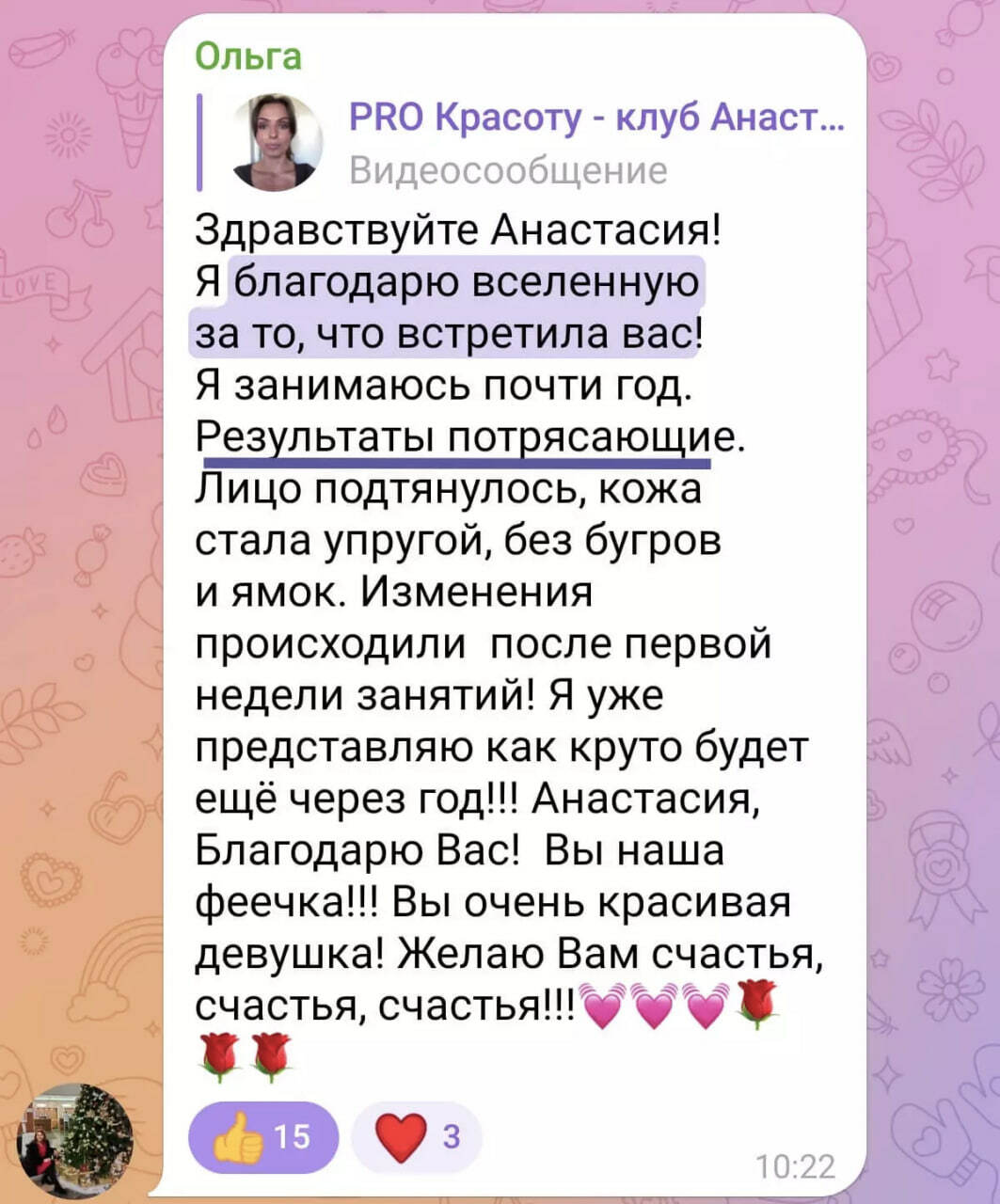 | Новый год прошел, а приятные подарки продолжаются. В канун рождества мы снизили цены на все тарифы клуба PRO Красоту, чтобы каждая могла приумножить свой результат в новом году. ❤️ | | | | После оформления подписки вы получите: | | | | | доступ ко всем продвинутым курсам Анастасии Бурдюг — SUPER Лицо PRO, Мьюинг, SUPER Тело; | | | | библиотеку материалов, которая каждый день пополняется статьями, разборами ошибок и видеороликами на темы красоты, здоровья и психологии; | | | | закрытый чат с единомышленницами, где царит поддерживающая и мотивирующая атмосфера; | | | | и главное — регулярные онлайн-встречи с Анастасией, где вы сможете скорректировать свою технику и узнать ответы на все волнующие вопросы. | | | | | Клуб PRO Красоту — это уникальное пространство красоты и молодости, где вы сможете: | | | - усилить уже полученные результаты от гимнастики для лица;