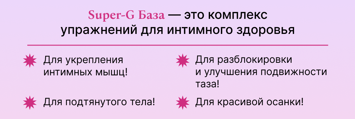 | Как вы наверняка знаете, мышцы тазового дна — одни из самых важных в теле женщины. Вы можете не качать пресс, попу, не работать над рельефным животиком и косыми мышцами и… Это практически никак не отразится на вашем здоровье. | | | | Да, если вы поддерживаете тело в тонусе, это помогает качественно улучшить вашу жизнь, повысить уровень энергии, подвижность, выносливость и защитить от многих возрастных проблем. Однако, от проблем по-женски это вас никак не страхует, а некоторые виды физической активности, наоборот, способствуют развитию проблем с недержанием и опущением. | | | | Мышцы тазового дна, в свою очередь, мы ради эстетики не качаем и в принципе узнаём об их наличии только по факту возникновения проблем «по женски» и назначения врача заниматься интимной гимнастикой. | | | | Тазовое дно — ахиллесова пята женского тела, которое нужно укреплять в течение всей жизни и заниматься регулярно. Беременность и роды, менопауза, возрастные изменения в организме — всё это ослабляет наш внутренний гамак. А он, между прочим, держит и предотвращает выпадение наших внутренних органов. | | | | Овладеть искусством управления интимными мышцами вам поможет наш курс «SUPER-G База». | | | | Курс «SUPER-G База» рассчитан как на новичков, так и продвинутых. Вы сможете научиться лучше управлять интимными мышцами, укрепить вашу ахиллесову пяту и предотвратить проблемы с опущением, недержанием. | | | | Курс без воды, видео короткие, упражнения объясняются подробно, чтобы вы легко могли повторять и соблюдать правильную технику. | | | | Вы сможете разобраться во всех нюансах и тонкостях интимной гимнастики и результат не заставит себя долго ждать: | | | | ✨ уйдут менструальные боли, ✨ снизятся симптомы климакса и ПМС, ✨ повысится чувствительность во время секса, оргазмы станут ярче, ✨ профилактика или лечение проблем с недержанием и опущением. | | | | Дополните ваши занятия на курсе «Интимное здоровье» практиками с акцентом на подвижность таза для 100% эффективности от тренировок. | | | | До 13.01 вы можете приобрести доступ к курсу «Super-G База» на целый год! | | | | Почему вам стоит приобрести годовой доступ? | | | | ✨ Год доступа = год тренировок, пользы и совершенствования ваших техник. ✨ Это удобно для вас! Круглая дата освободит вашу память: не нужно высчитывать, когда подписка на клуб закончится. ✨ Приобретая годовой доступ, вы как бы показываете своему мозгу серьёзность ваших намерений заняться своим женским здоровьем. Сознание — сложная штука, но такими хитрыми манипуляциями его можно немного обхитрить ;) | | | | ✨ Это выгодно! Наш эксклюзивный праздничный годовой тариф ощутимо приятнее по цене, чем несколько платежей в тарифах на 3 и на 6 месяцев доступа. | | | | | | Вы получили это письмо, потому что оставили свои данные на сайте anyclass.com | | | |