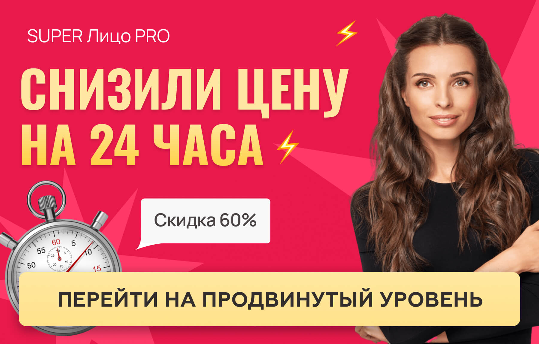 | Ох уж эти носогубные складки. Каждая третья девушка сталкивается с данной проблемой еще до 30 лет. “Носогубки” придают лицу усталый вид и значительно прибавляют возраст. | | | | Носогубные складки присутствуют у всех, даже у младенцев. Однако их выраженность со временем усиливается под влиянием внешних и внутренних факторов. Сначала они заметны лишь когда вы улыбаетесь, а потом глубокие заломы становятся видны и в состоянии покоя. | | | | Как же уменьшить глубину носогубных складок? В этом вам поможет продвинутый курс SUPER Лицо PRO! | | | | Дополните им свою подписку и достигайте ярких результатов в разы быстрее! | | | | ⚡️ Вы оплачиваете продвинутую программу лишь 1 раз. Доступ сохраняется на весь срок вашей подписки на курс SUPER Лицо. | | | | В курсе SUPER Лицо PRO мы усиленно проработаем зону носогубного треугольника с помощью новых эффективных упражнений! Вас ждут: | | | - продвинутый уровень с углубленным разбором каждого упражнения в 3-х форматах;