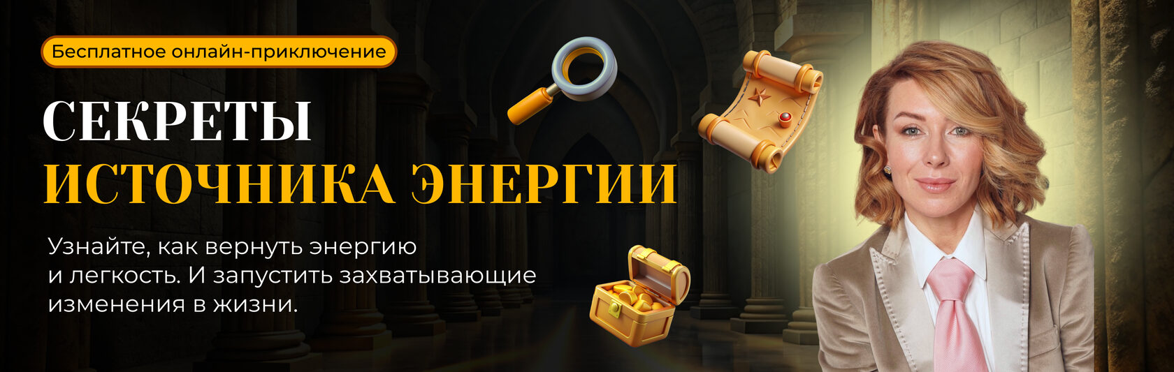 | Сегодня зову тебя в приключение. Нет-нет, мы никуда не едем. Приключение пройдет онлайн. | | | | Мы будем раскрывать бесконечный источник энергии, который доступен каждой из нас. | | | | Нашим проводником станет Алена Райцер, она входит в ТОП-20 самых востребованных психологов г. Москвы и уже 13 лет ведет частную практику с клиентами. | | | | Она поделится авторской методикой, с которой ты сможешь раскрывать состояние победителя. И, кстати, раньше методика была доступна только в личной работе с Аленой. | | | - Если ты постоянно устаешь. Дела как будто не идут. Чувствуешь застой, но не знаешь как сдвинуться.